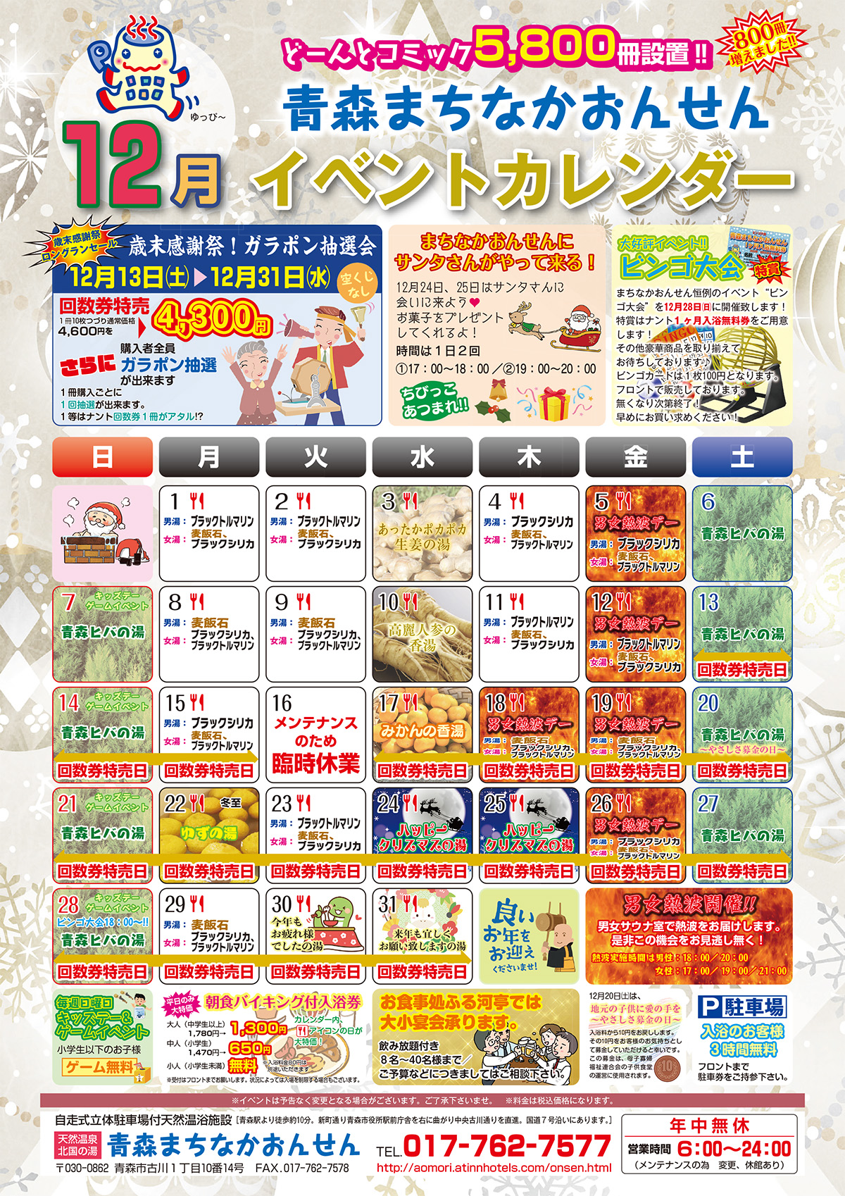 12月の温浴イベント情報のお知らせ
