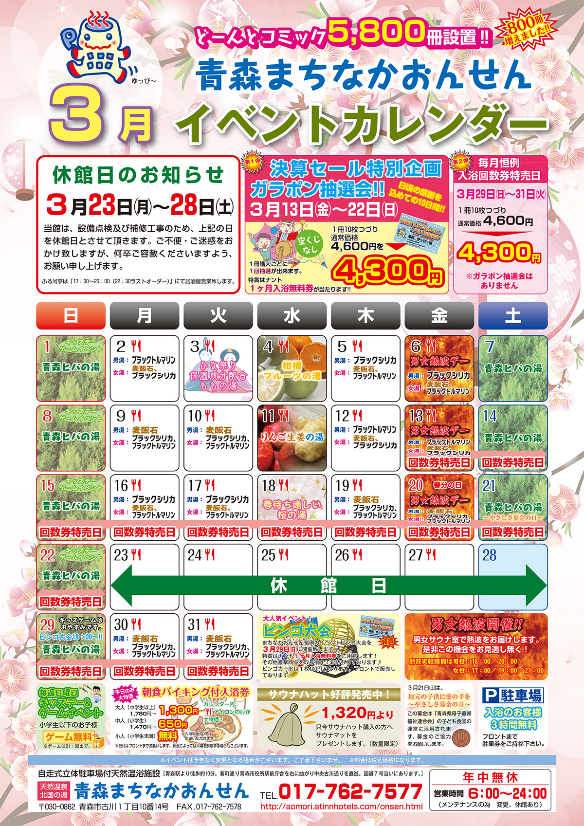3月の温浴イベント情報のお知らせ